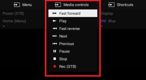- Las siguientes ilustraciones muestran controles adicionales que pueden estar disponibles bajo Media controls (Controles de medios) y Shortcuts (Accesos directos).
