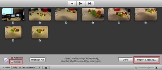 - Bajo las imágenes miniatura visualizadas, haga clic para activar las casillas del vídeo que desea importar y haga clic en el botón Import Checked.