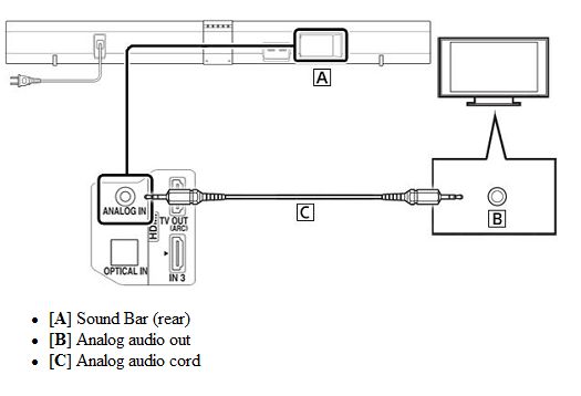Conecte el cable de audio analógico desde la toma de salida de audio del televisor a la toma ANALOG IN de la Barra de sonido. El tipo de conexiones analógicas en sus dispositivos determina cómo conectarse.